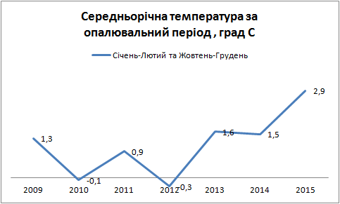 та 2015р. (теплий 10,5°С), різниця 1,5°С.
